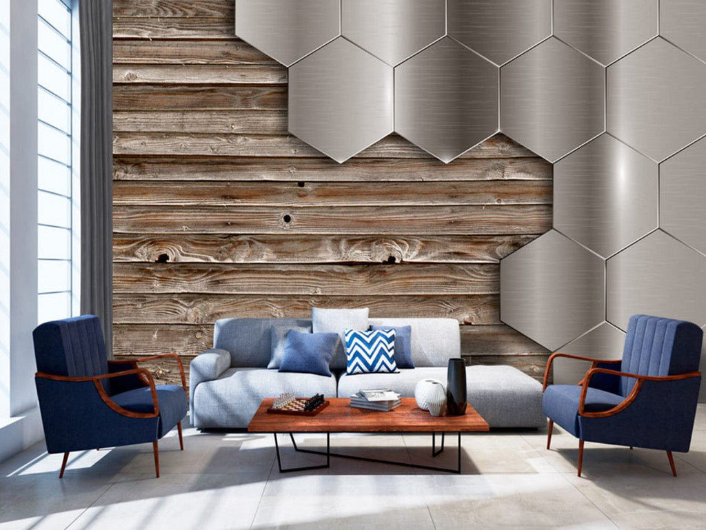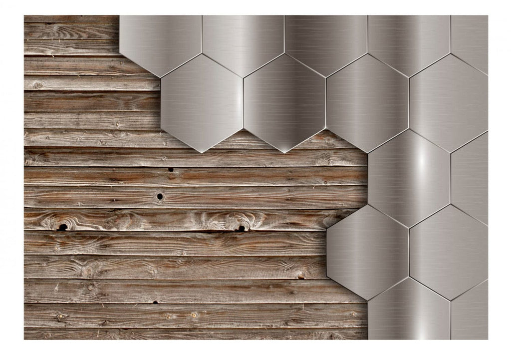 Fototapetes ar koka un flīzes rakstu - Neparasts duets