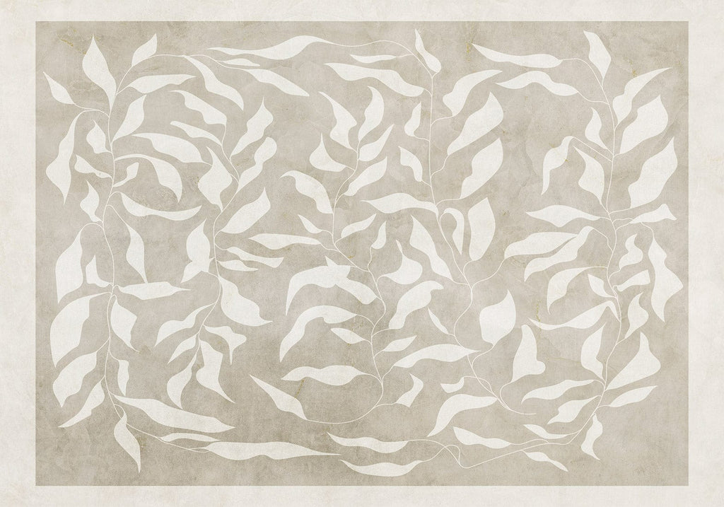 Fototapetes ar abstrakta rakstu - Baltas lapas – abstrakts augu motīvs uz smilškrāsas fona ar rāmi