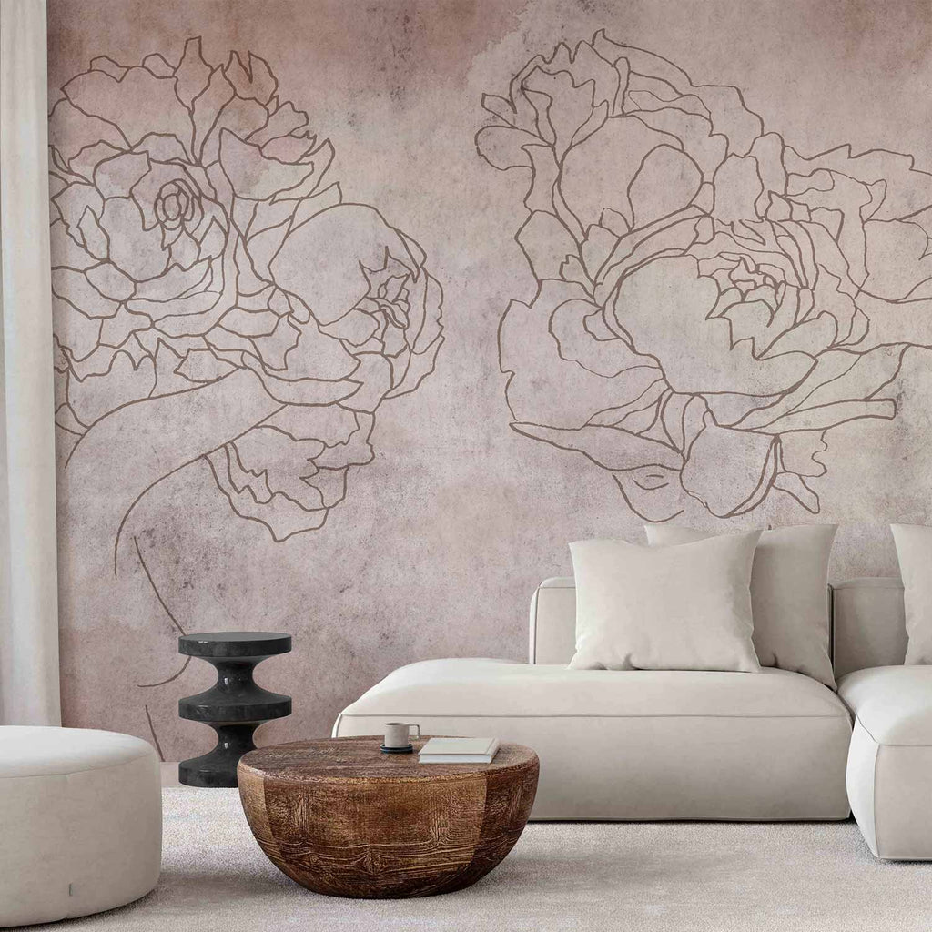 Fototapetes ar abstrakta rakstu - Floristiska abstrakcija – cilvēku silueti ar ziediem lineart stilā