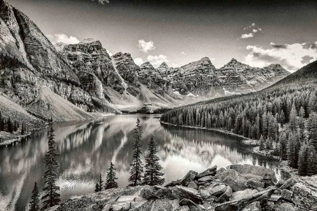 Fototapetes ar dabu - Kalnu ezers (melnbalta versija), 375x250 cm