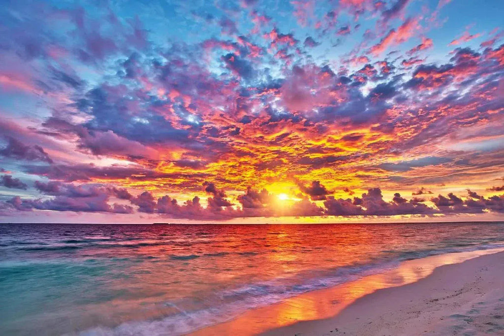 Fototapetes ar jūras skatu - Krāsains saulriets, (375x250 cm)