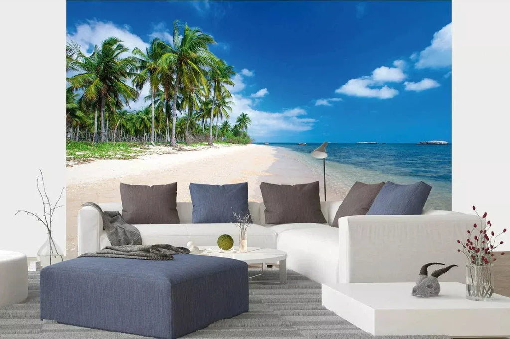 Fototapetes ar tropisko skatu - Augstas palmas pludmalē, N3235, 375x250 cm