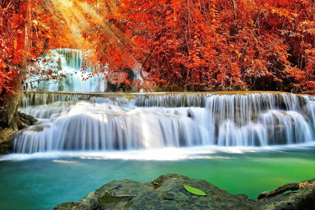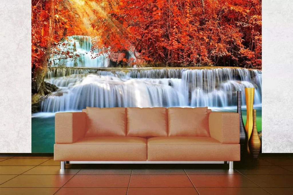 Fototapetes ar ūdenskritumu - Ūdenskritums rudens mežā, N3261, 375x250 cm