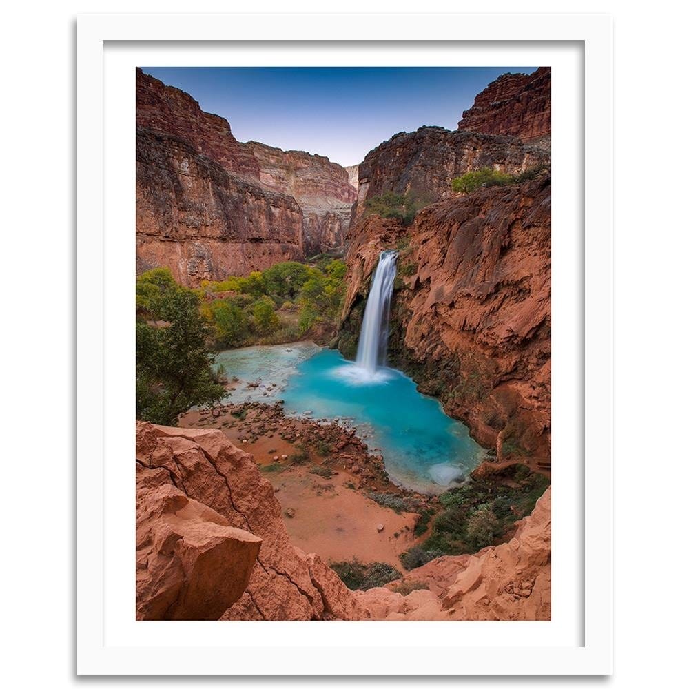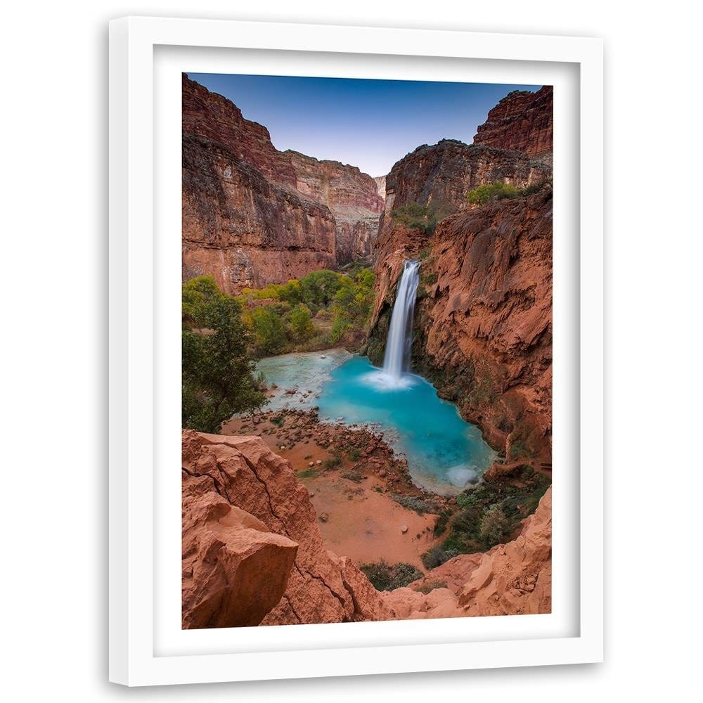 Glezna baltā rāmī - Blue Waterfall Among The Rocks