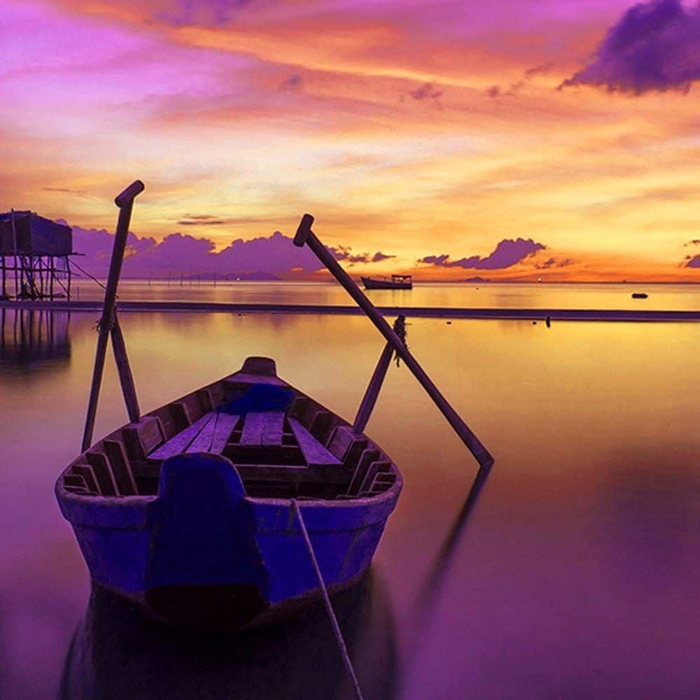 Glezna baltā rāmī - Boat On Calm Lake 3