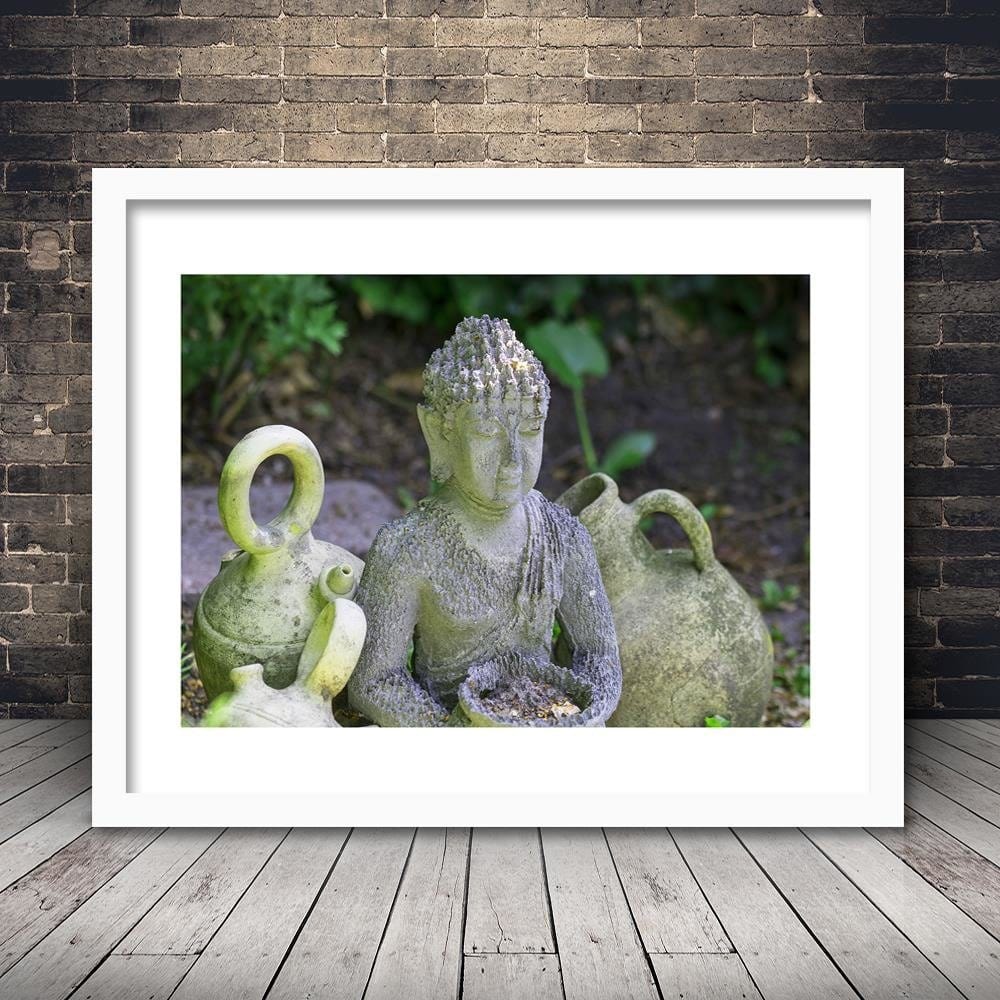 Glezna baltā rāmī - Buddha With Dishes