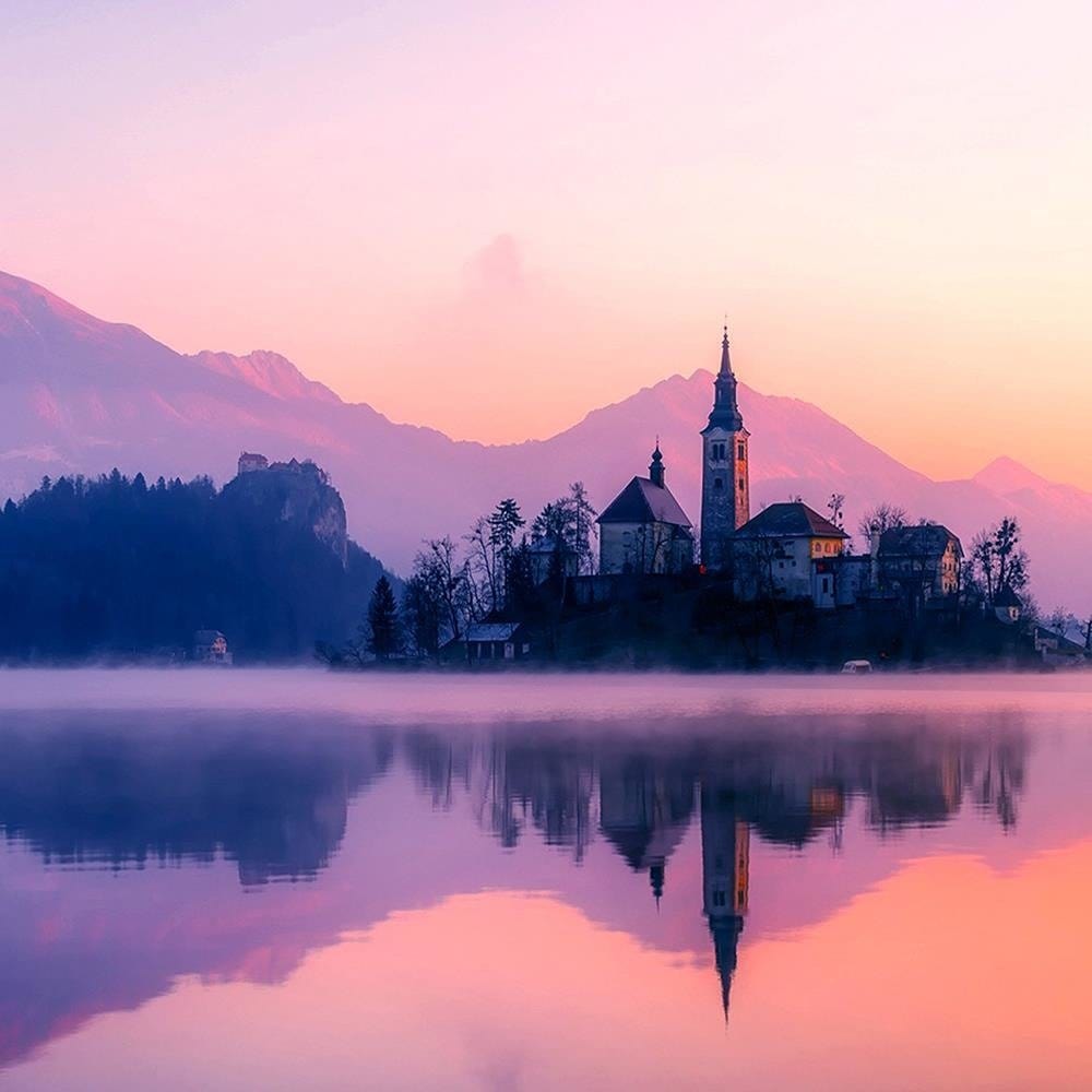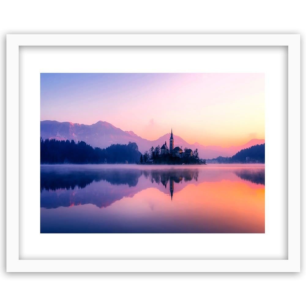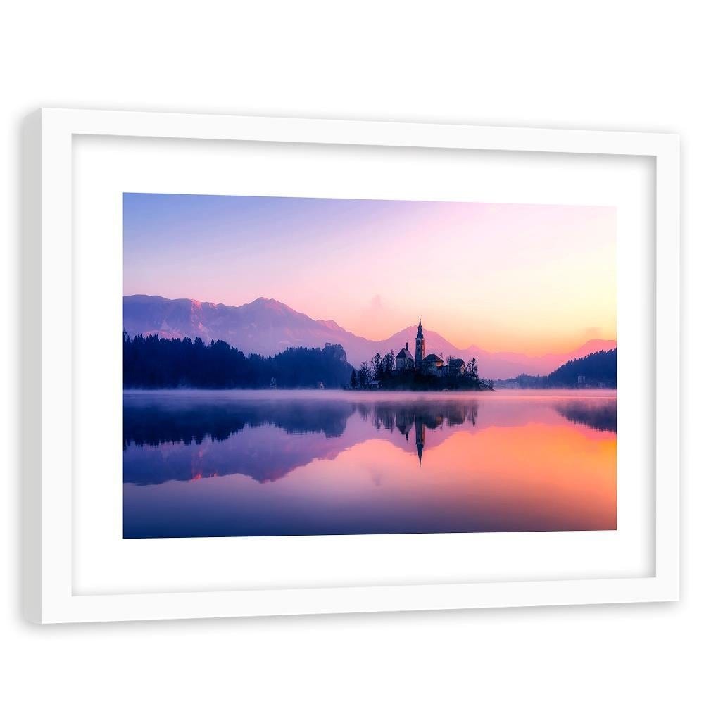 Glezna baltā rāmī - Castle Alpine Lake 3