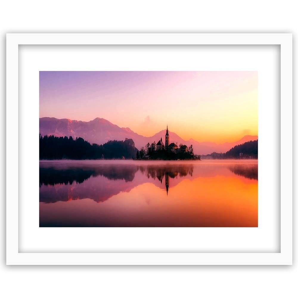 Glezna baltā rāmī - Castle On A Mountain Lake