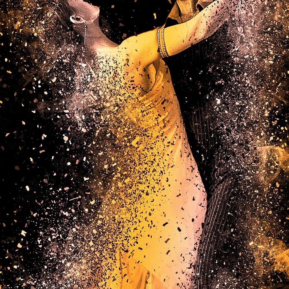 Glezna baltā rāmī - Couple Dancing In A Golden Dust