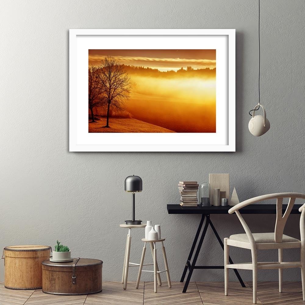 Glezna baltā rāmī - Fog On The Lake