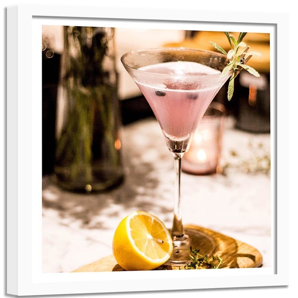 Glezna baltā rāmī - Glāze ar rozā dzērienu
