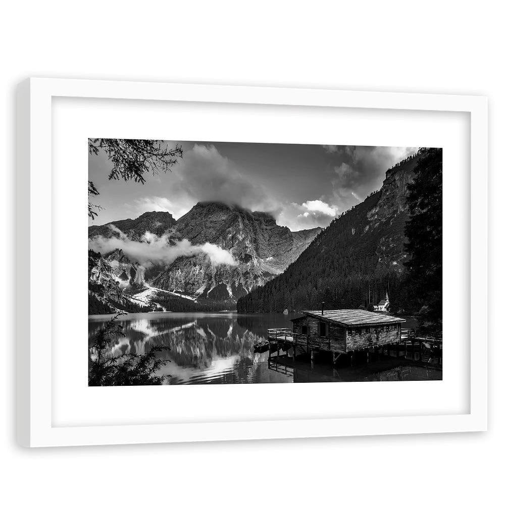 Glezna baltā rāmī - House Alpine Lake 2