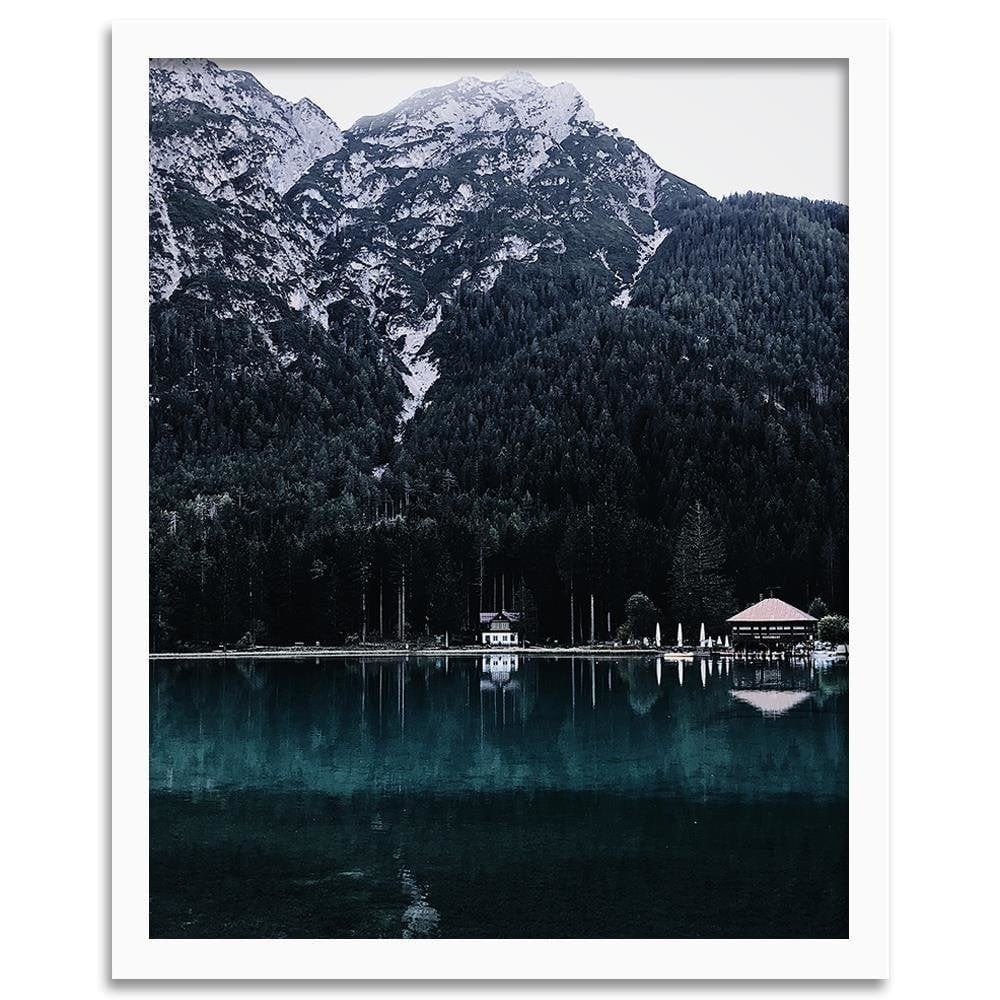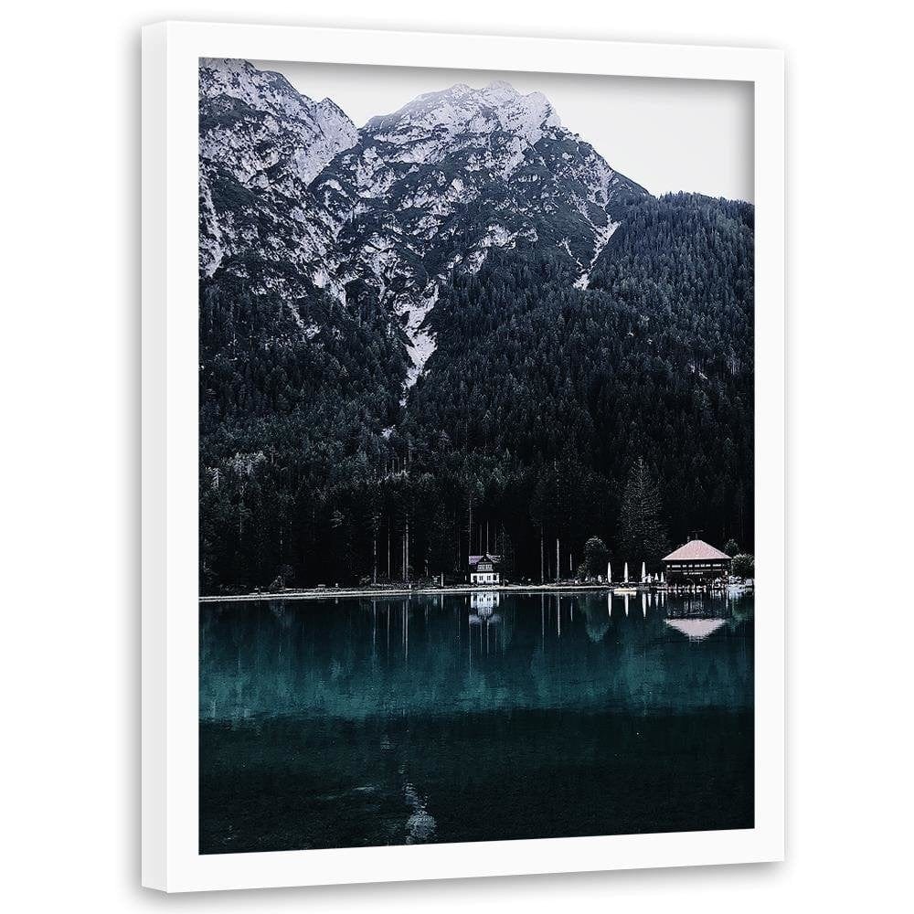Glezna baltā rāmī - Houses The Mountain Peak