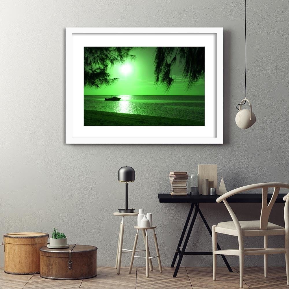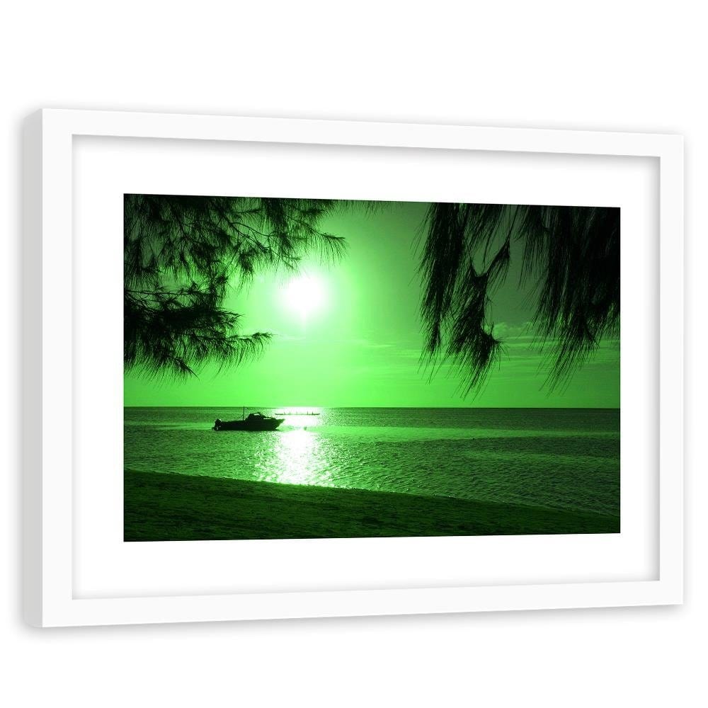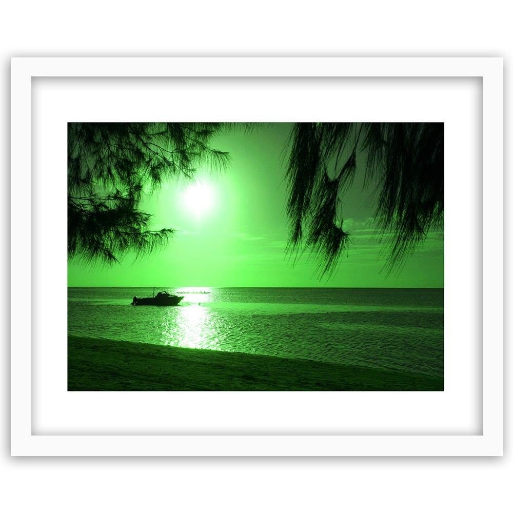 Glezna baltā rāmī - Motor Boat On The Sea Shore