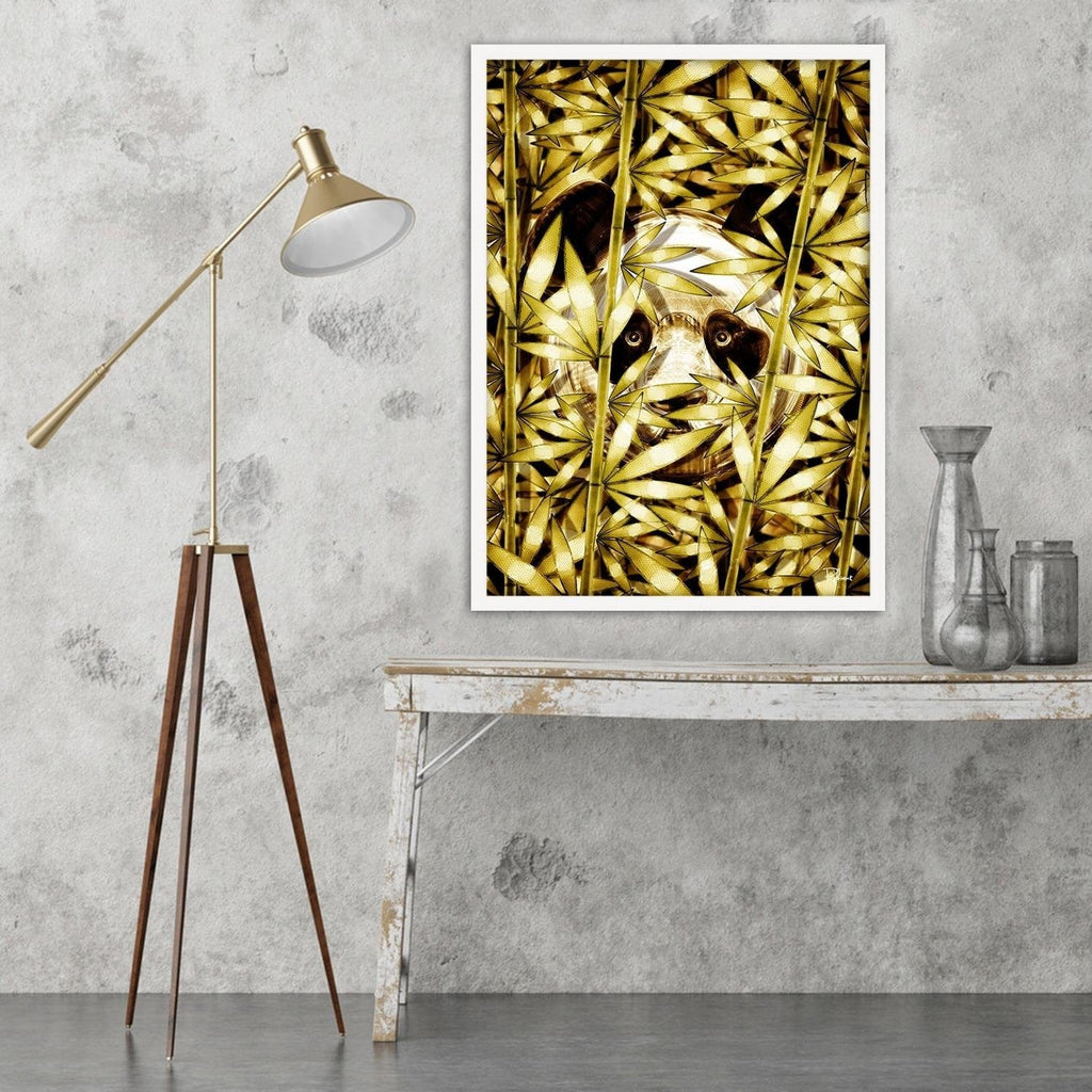 Glezna baltā rāmī - Panda Image Animal Print Gold