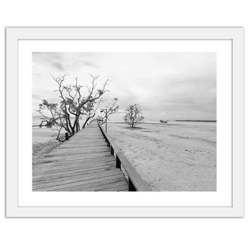 Glezna baltā rāmī - Picturesque landscape with a bridge