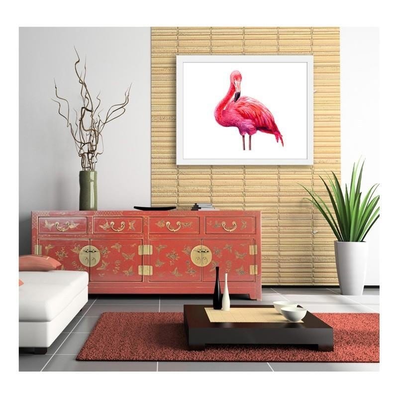 Glezna baltā rāmī - Realistic illustration of a pink flamingo