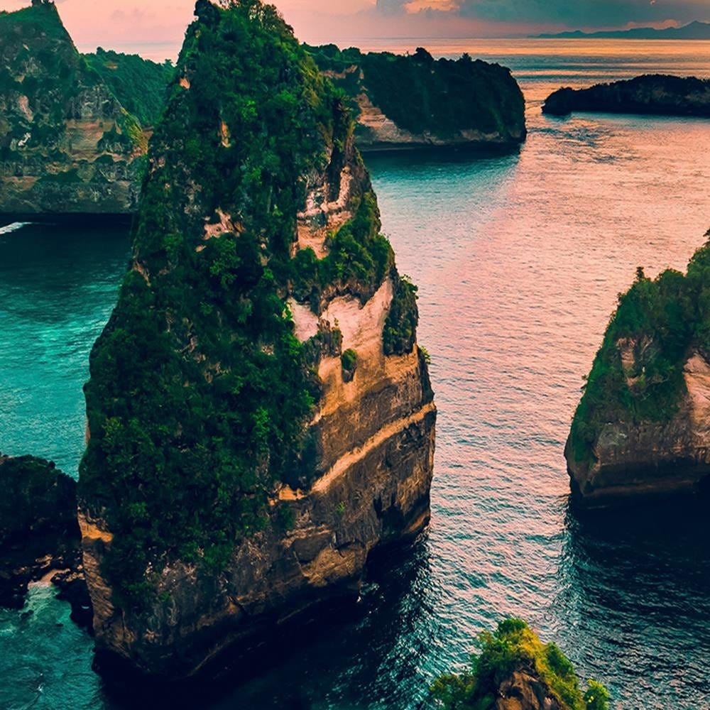 Glezna baltā rāmī - Rocks In The Turquoise Ocean