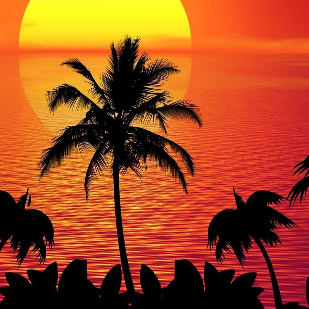 Glezna baltā rāmī - Sunset And Palm Trees 2