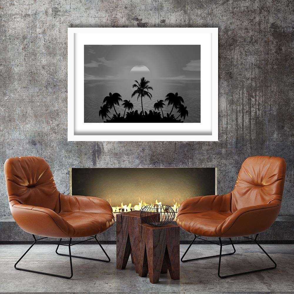 Glezna baltā rāmī - Sunset With Palms 2