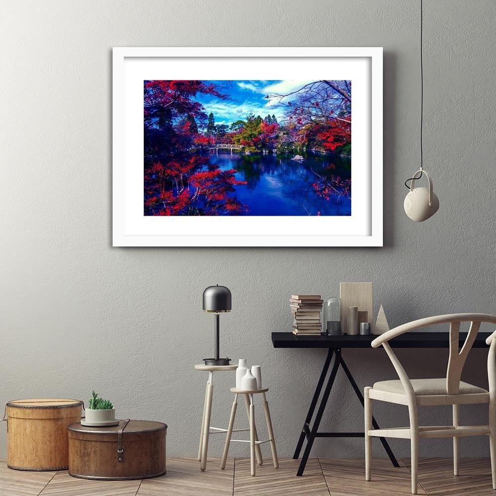 Glezna baltā rāmī - The Bridge Over The River In The Park