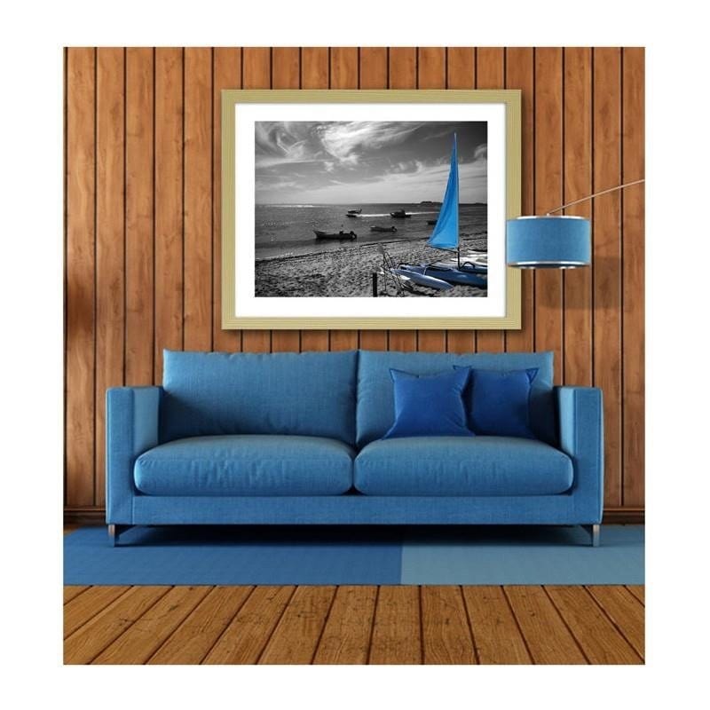 Glezna bēšā rāmī - Blue catamaran