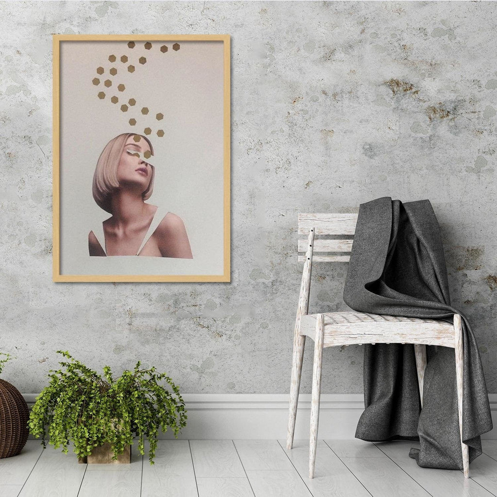 Glezna bēšā rāmī - Collage Woman Portrait Image Beige