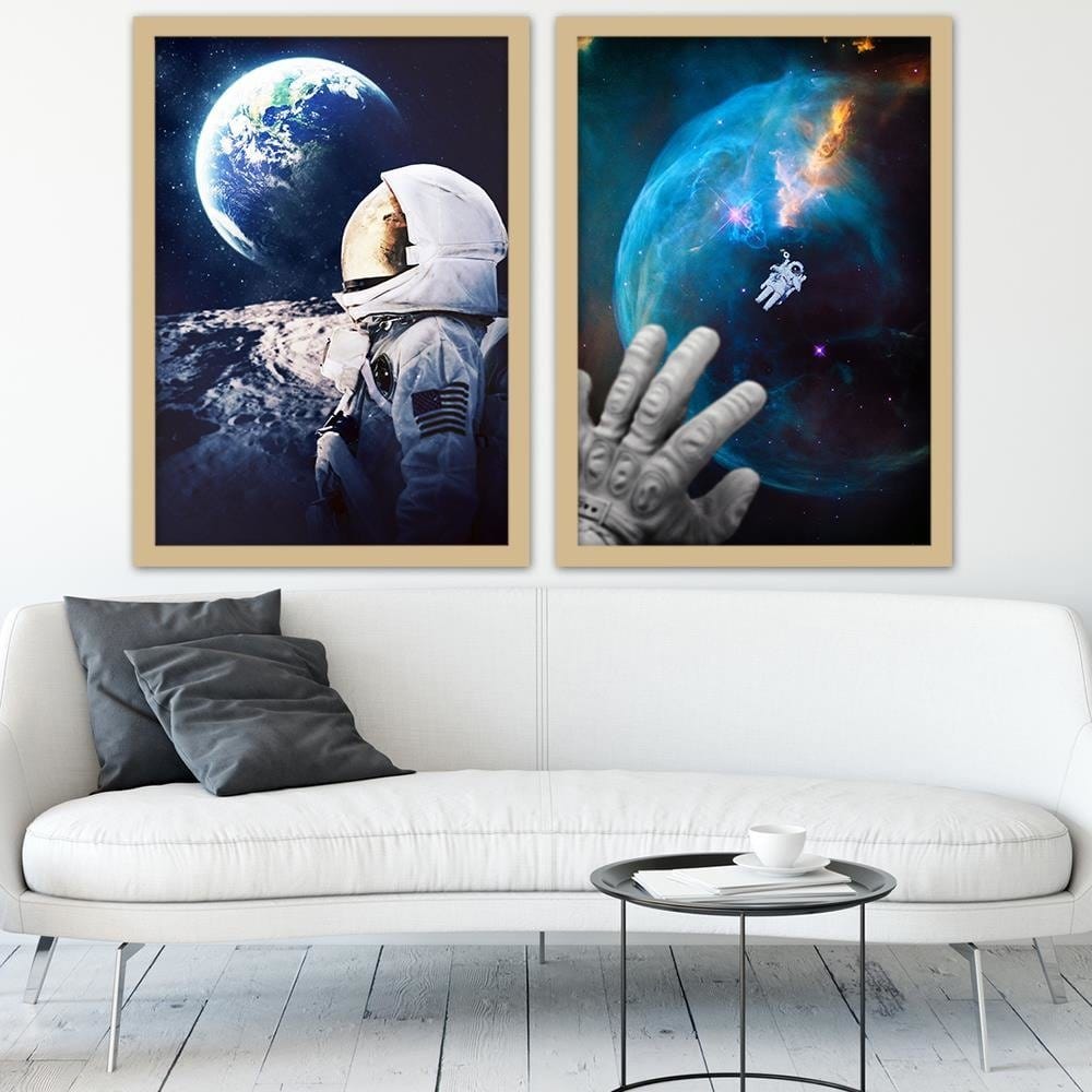 Glezna bēšā rāmī - Galaxy Artwork Blue