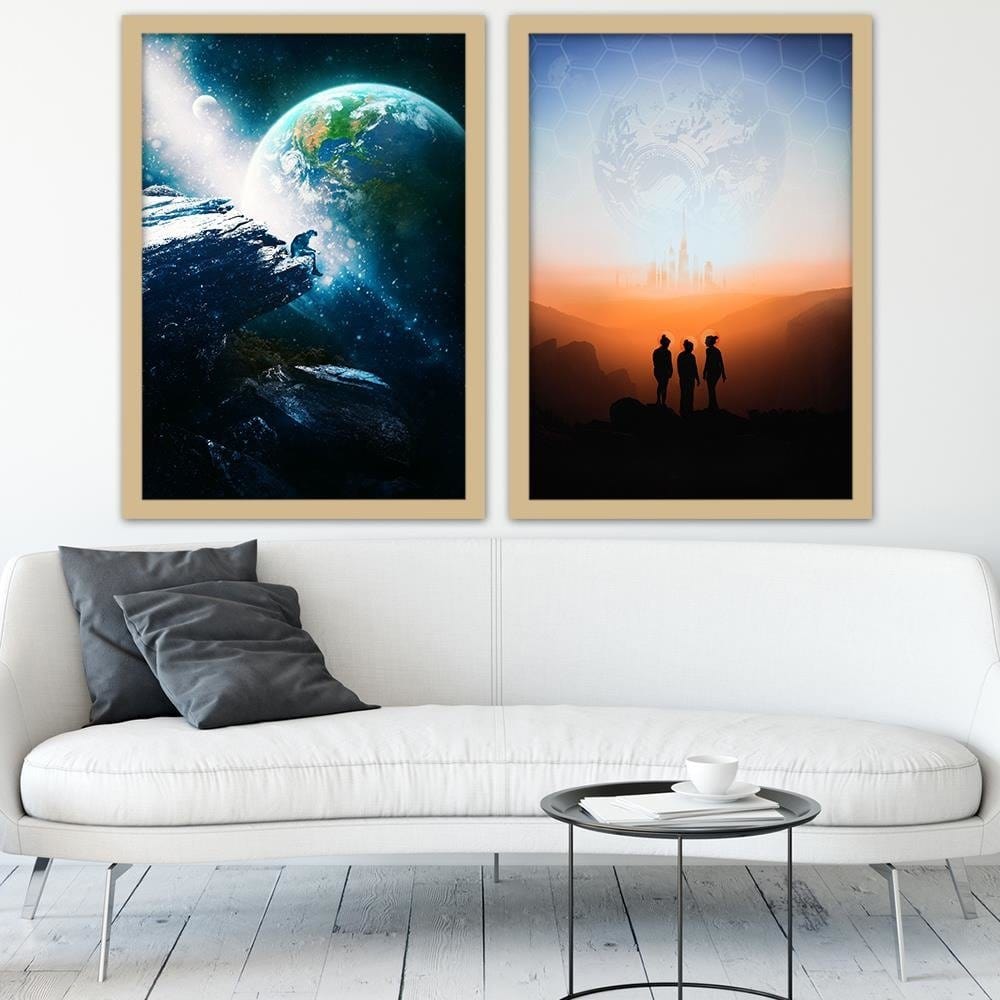Glezna bēšā rāmī - Galaxy Painting Orange