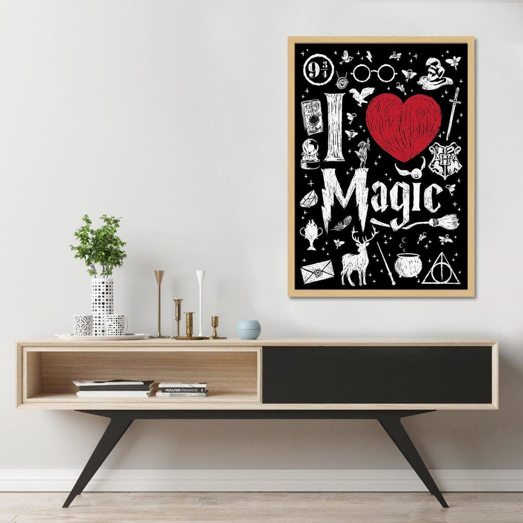 Glezna bēšā rāmī - I Love Magic Image Black And White