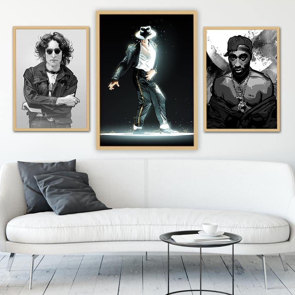 Glezna bēšā rāmī - King Of Pop Icon Black