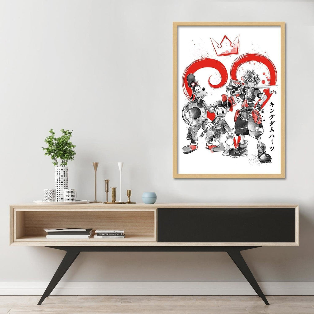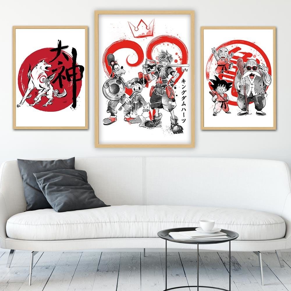 Glezna bēšā rāmī - Kingdom Japan Art Red