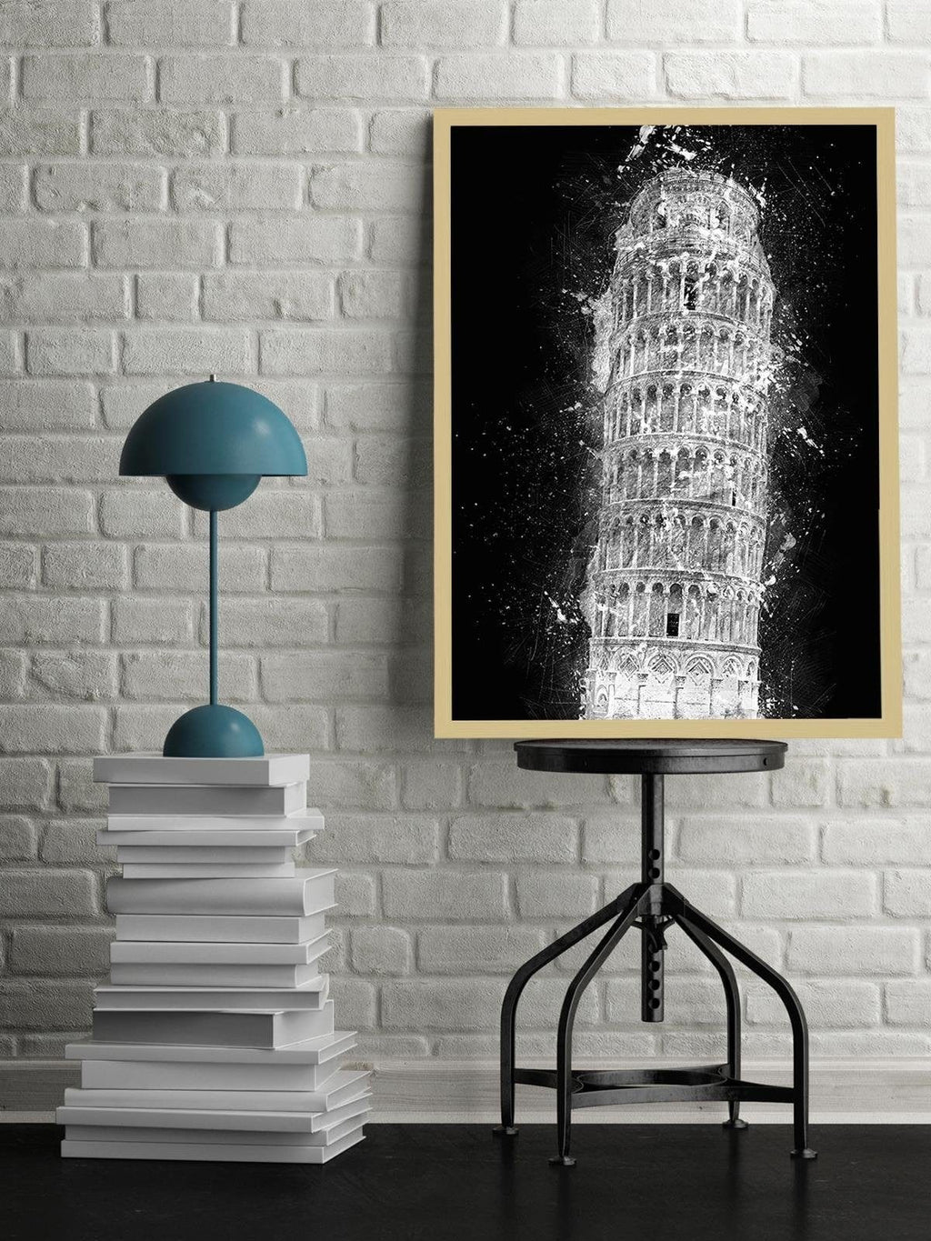 Glezna bēšā rāmī - Leaning Tower Of Pisa At Night