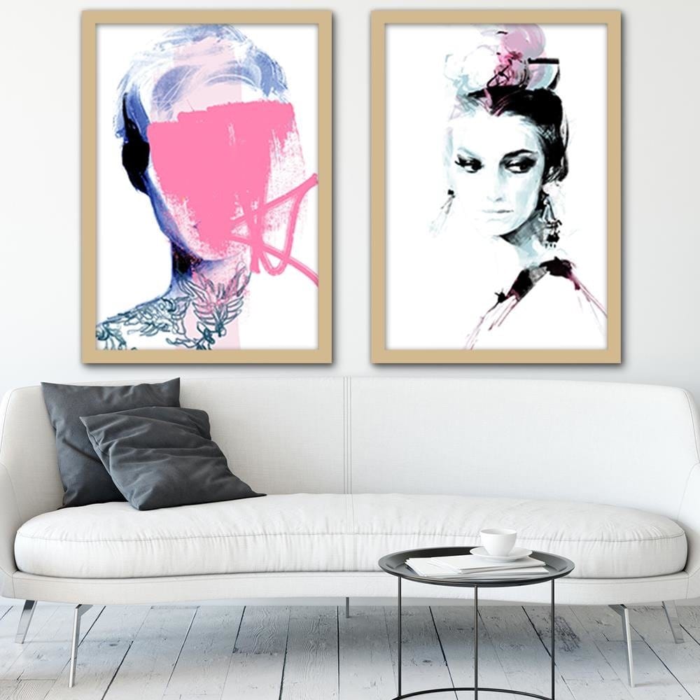 Glezna bēšā rāmī - Model Face Pink