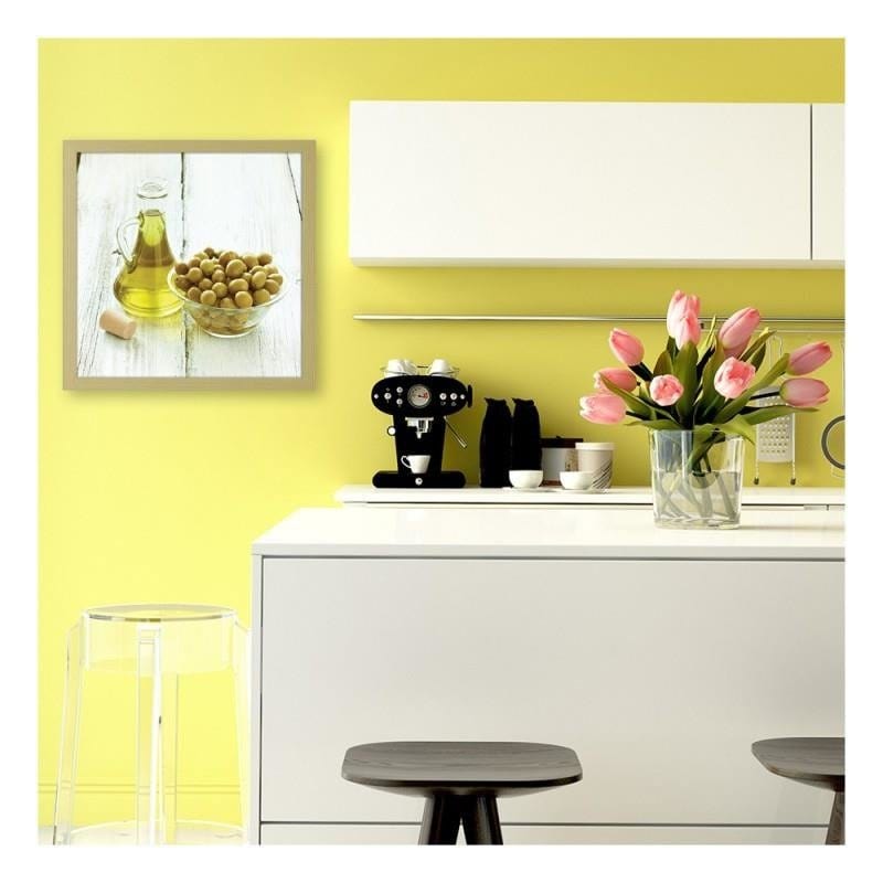 Glezna bēšā rāmī - Olives in a bowl and oil