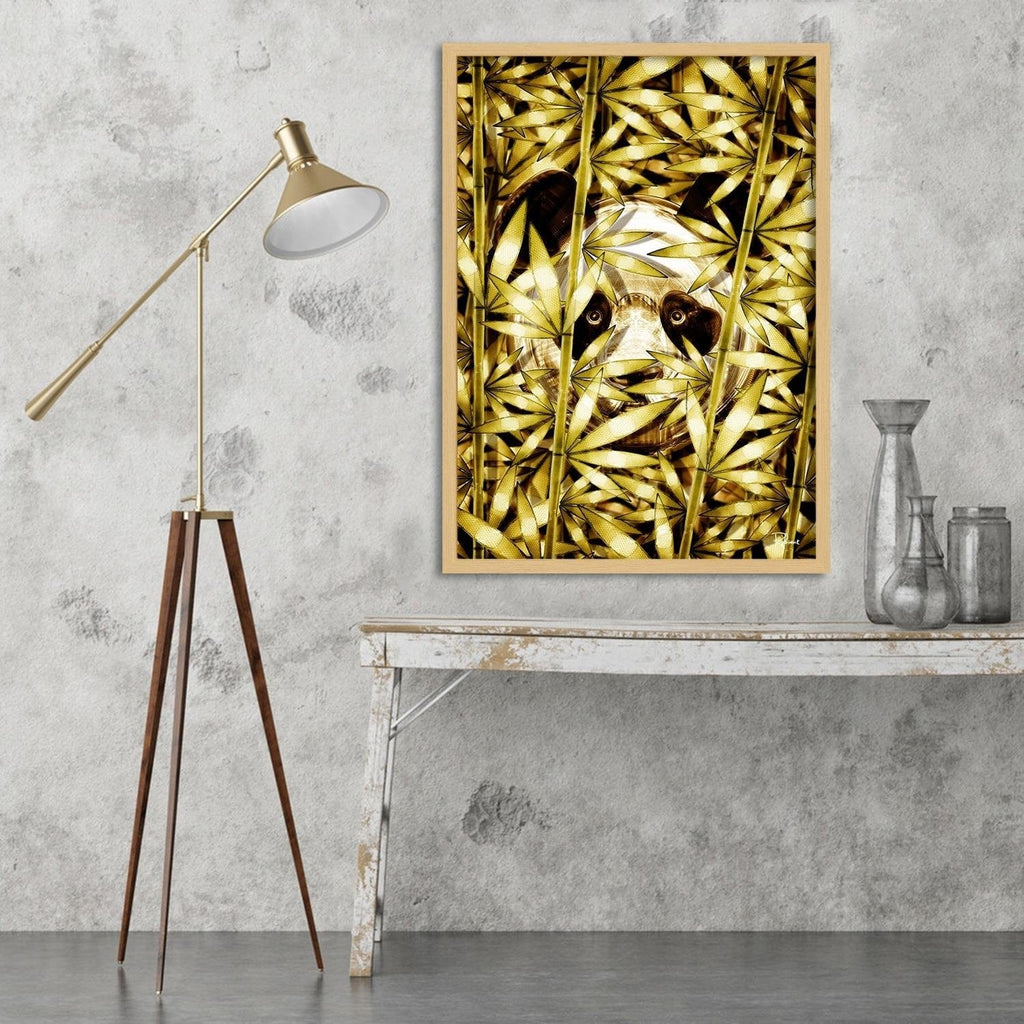 Glezna bēšā rāmī - Panda Image Animal Print Gold