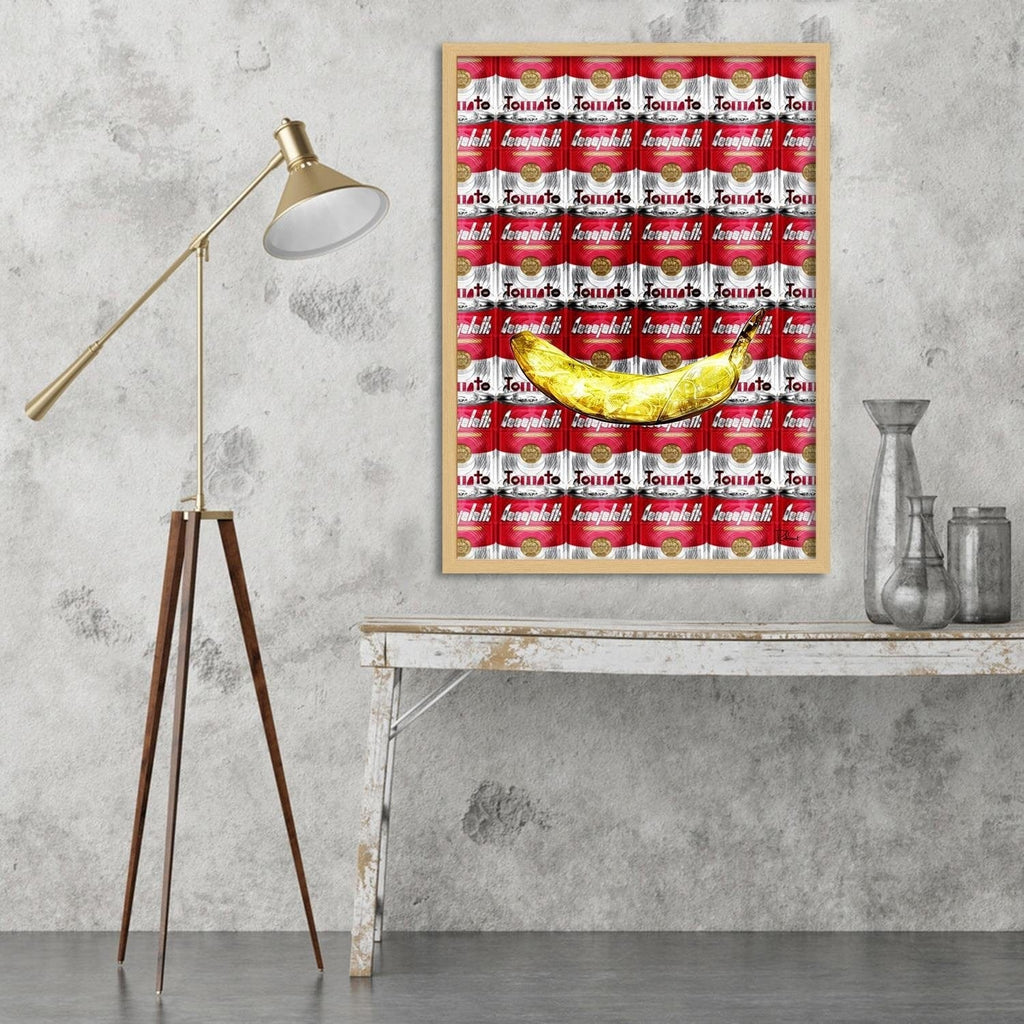Glezna bēšā rāmī - Pop Art Soup Cans Red