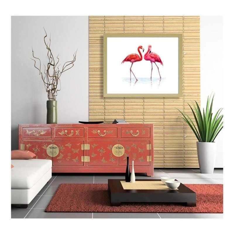 Glezna bēšā rāmī - Realistic illustration of flamingos standing in the water