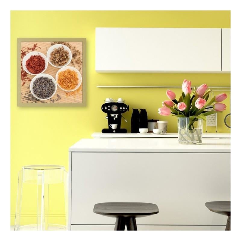 Glezna bēšā rāmī - Spices in white bowls