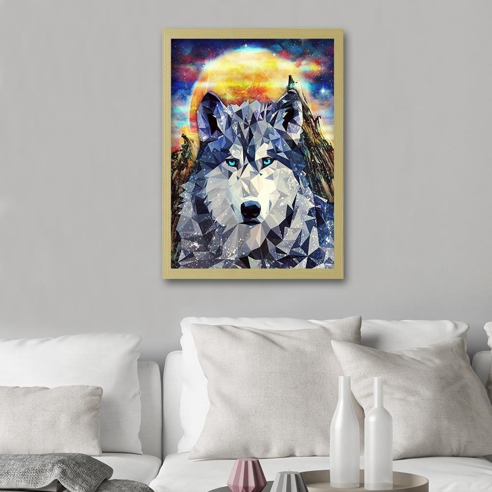Glezna bēšā rāmī - Wolf On A Background Of Mountains