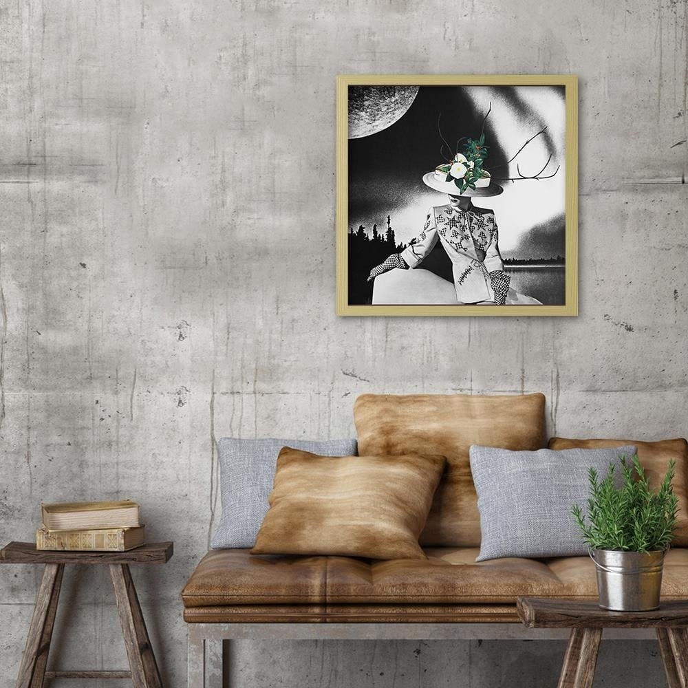 Glezna bēšā rāmī - Woman In Hat With Flowers