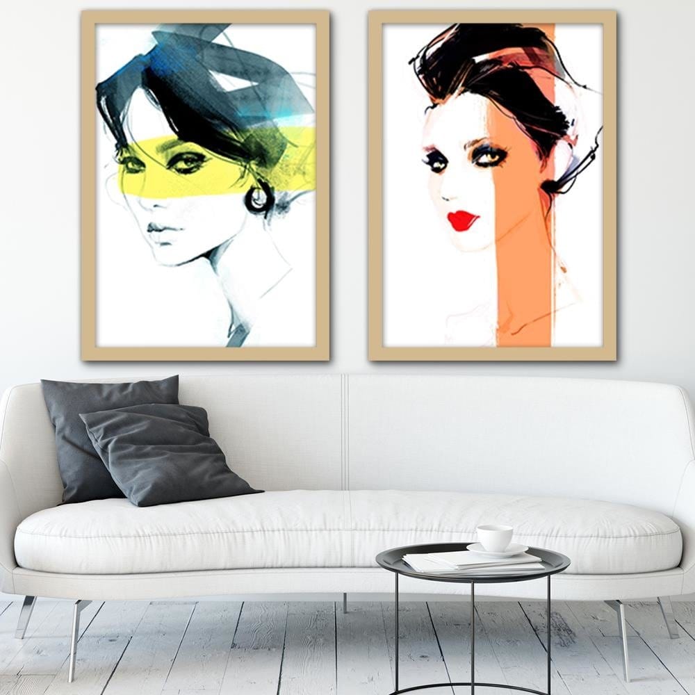 Glezna bēšā rāmī - Woman Watercolour
