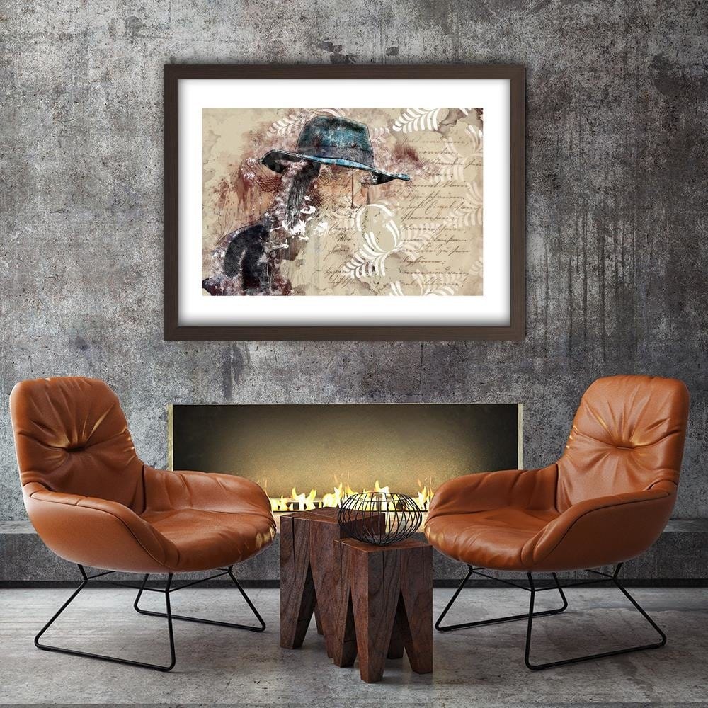 Glezna brūnā rāmī - A Woman In A Blue Hat