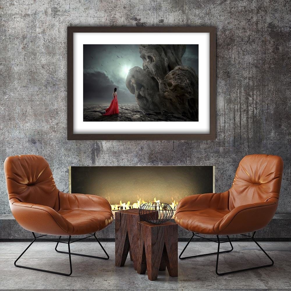 Glezna brūnā rāmī - A Woman In A Red Dress Fantasy