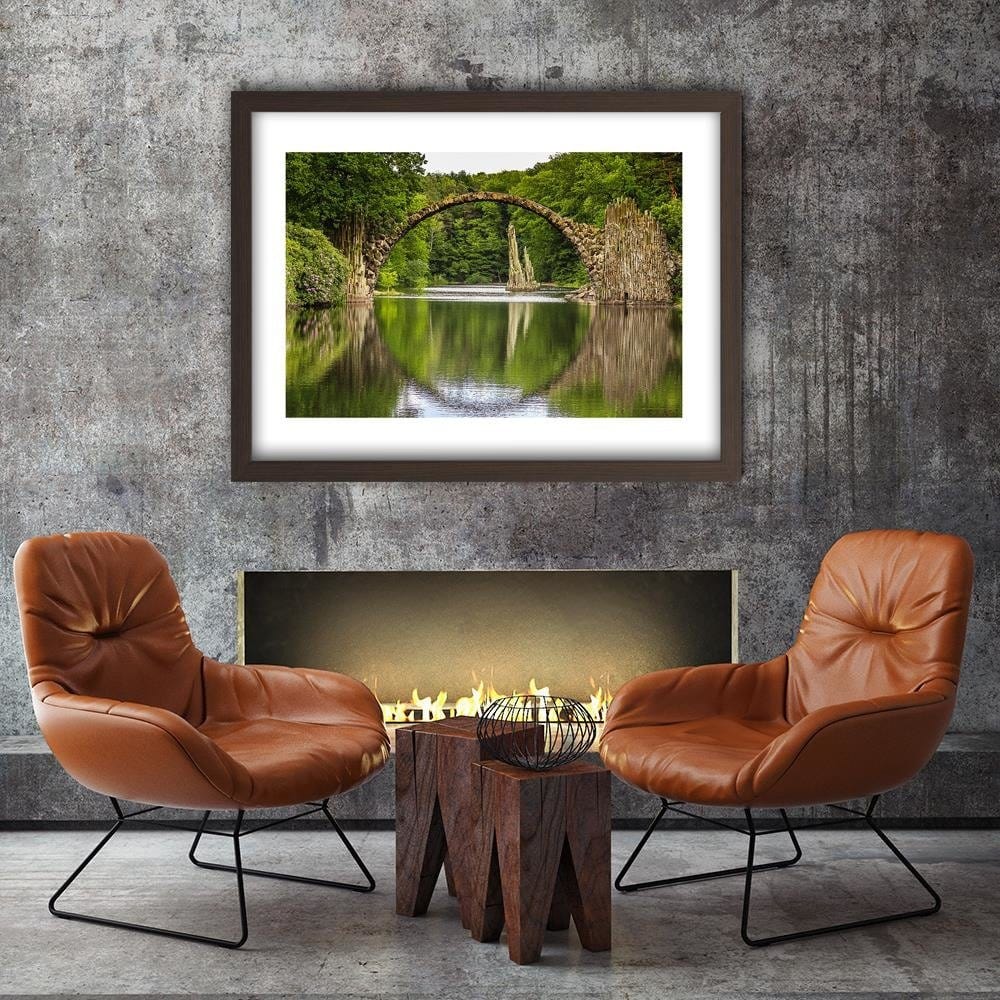 Glezna brūnā rāmī - Arch Bridge Over The Lake