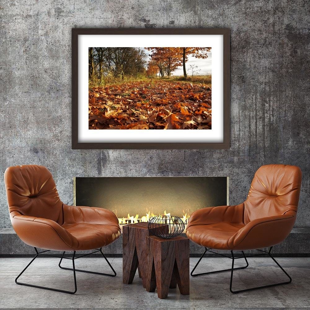 Glezna brūnā rāmī - Autumn Leaves On The Forest Road