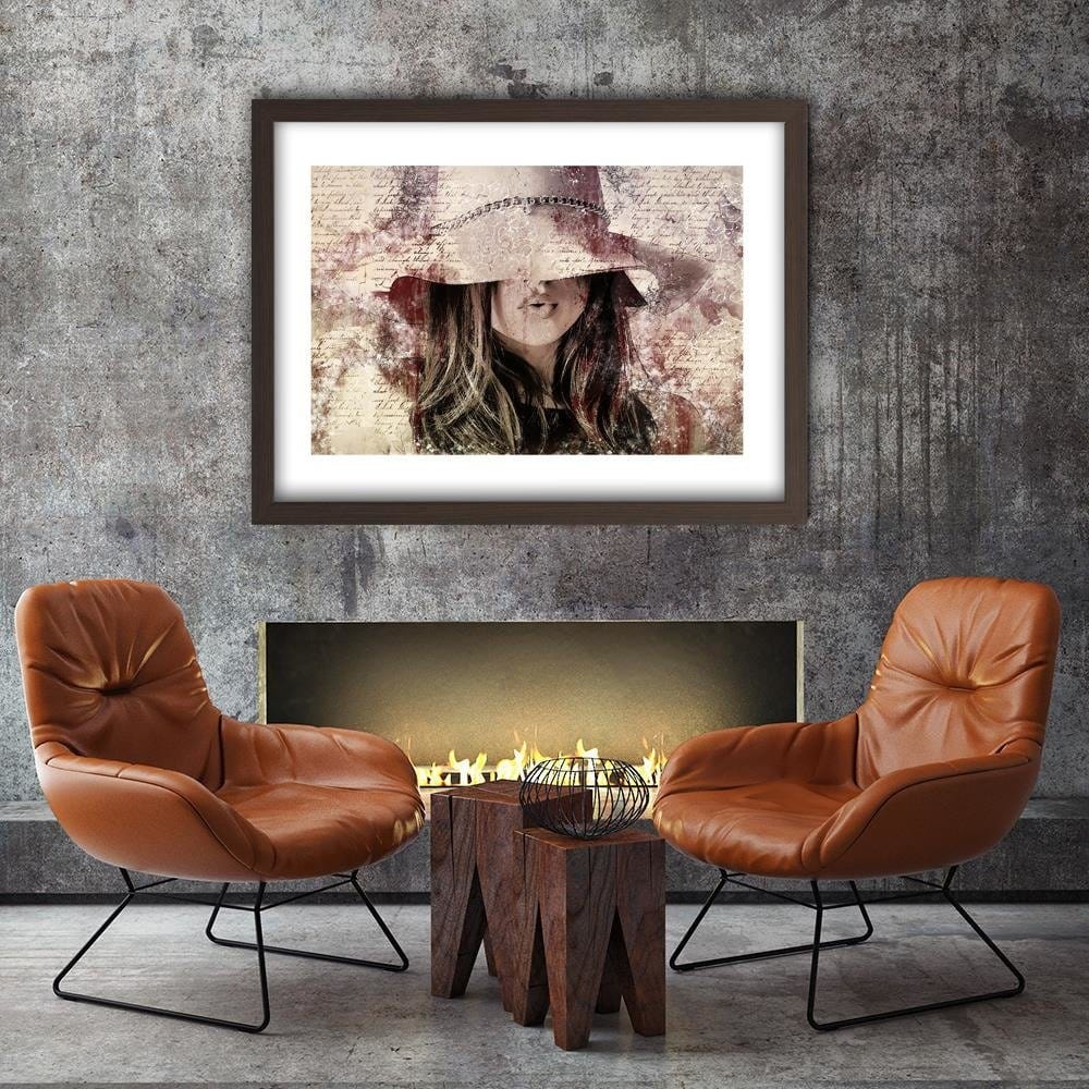 Glezna brūnā rāmī - Beautiful Woman In A Hat