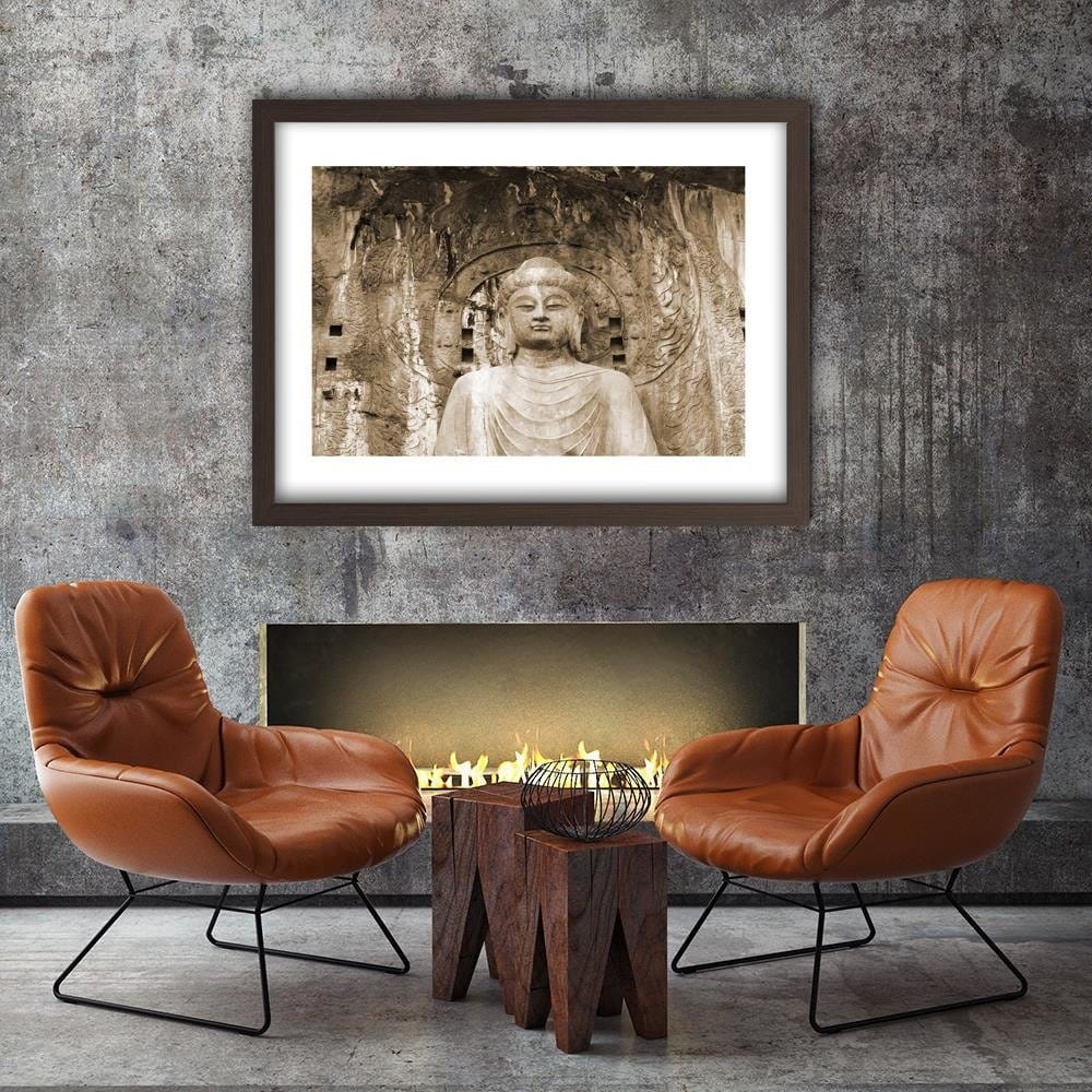 Glezna brūnā rāmī - Buddha In Front Of The Walls Of The Temple