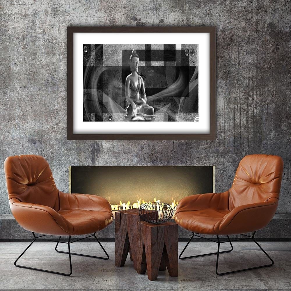 Glezna brūnā rāmī - Buddha On Geometric Background