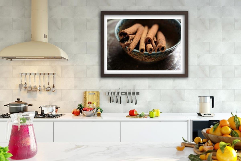 Glezna brūnā rāmī - Cinnamon Sticks In A Bowl